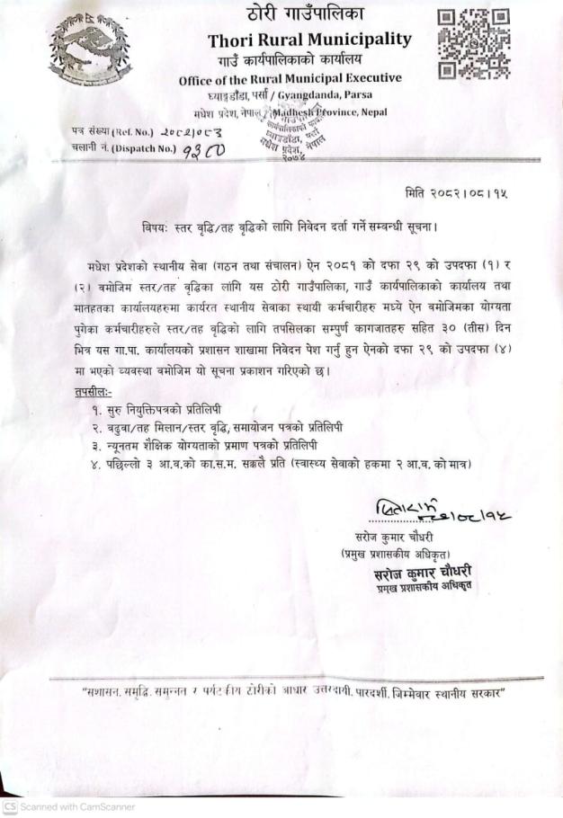 स्तर वृद्धि/तह वृद्धिको लागि निवेदन दर्ता गर्ने सम्बन्धी सूचना।