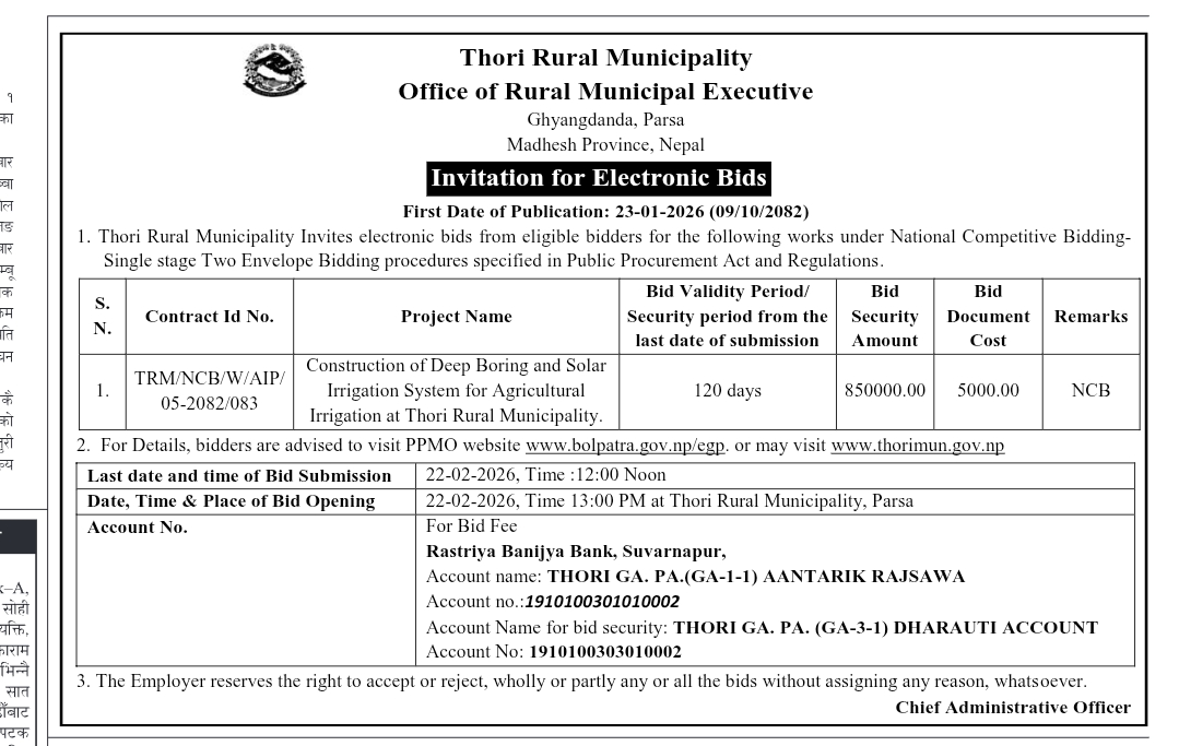 सार्वजनिक खरिद/बोलपत्र सूचना