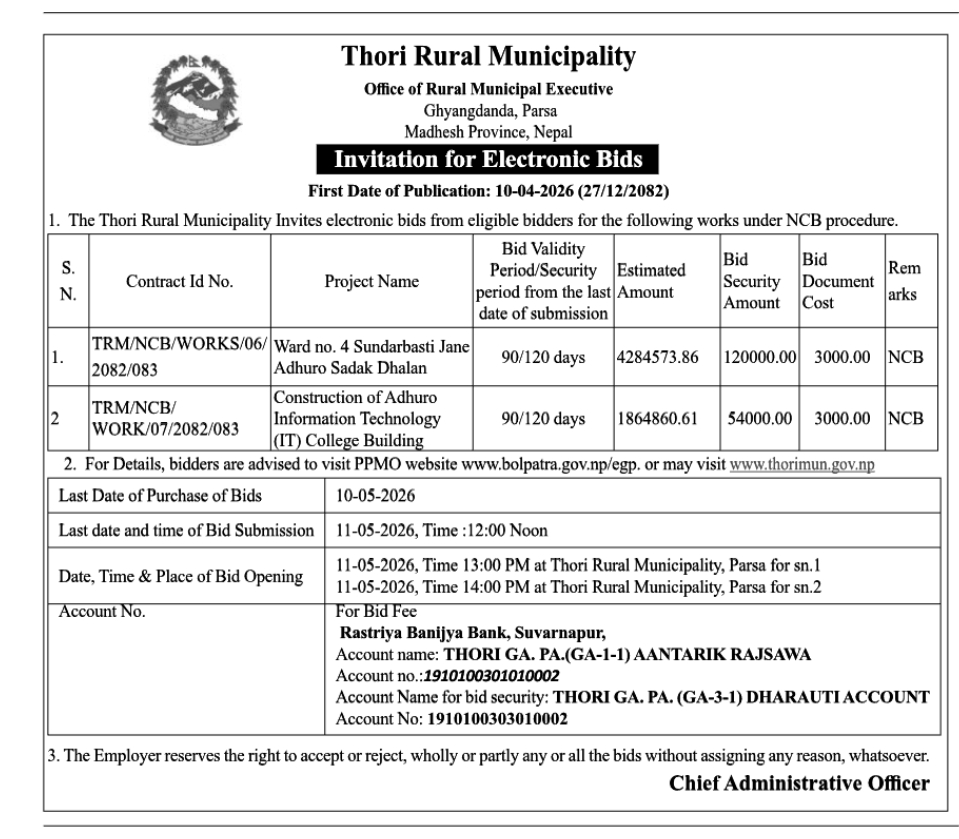 सार्वजनिक खरिद/बोलपत्र सूचना