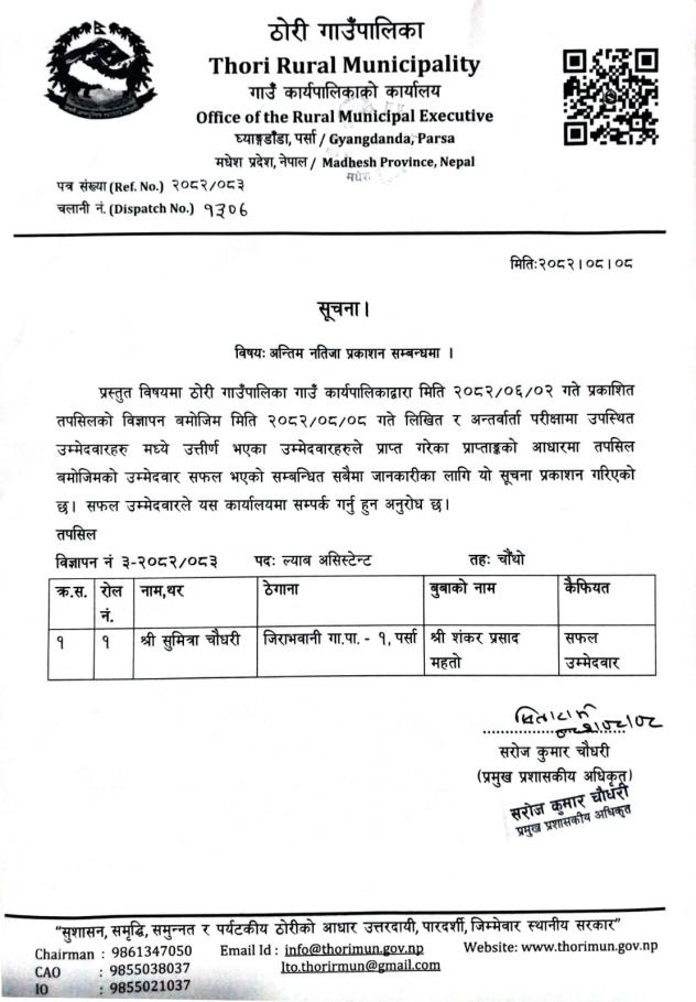 अन्तिम नतिजा प्रकाशन सम्बन्धमा।