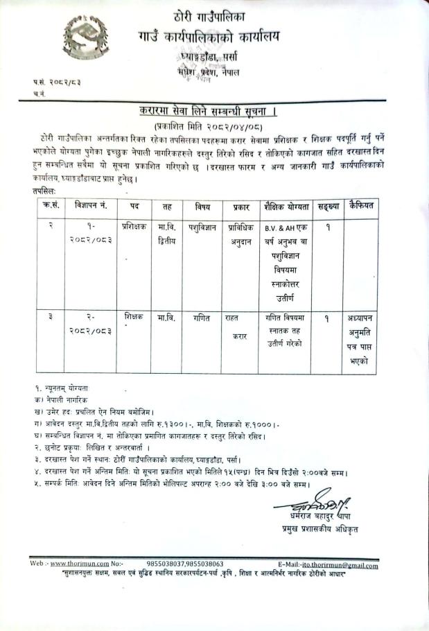 Thori Rural Municipality (ठोरी गाउँपालिका)