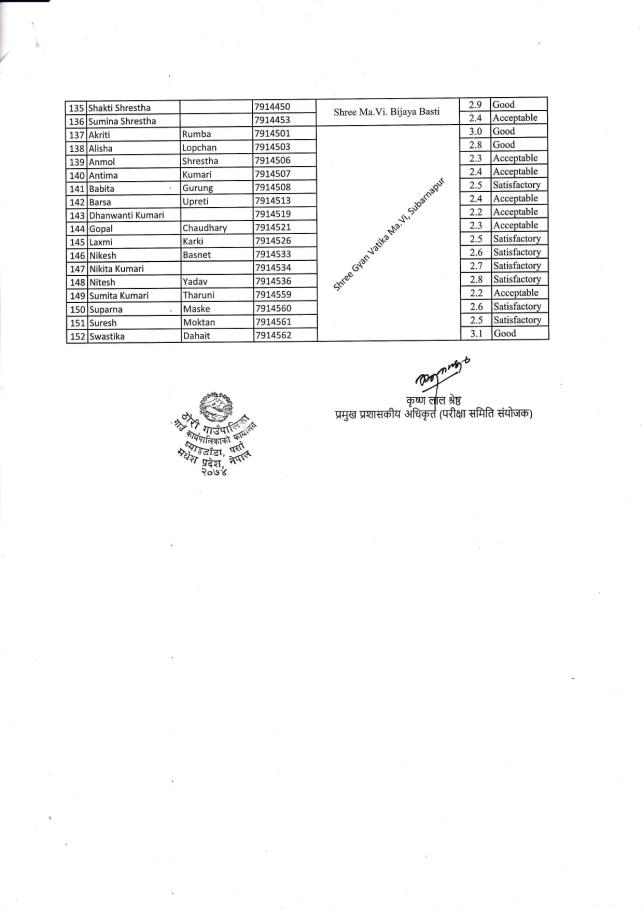 गाउँपालिका स्तरीय कक्षा ८ को परिक्षाफल प्रकाशन सम्बन्धमा।