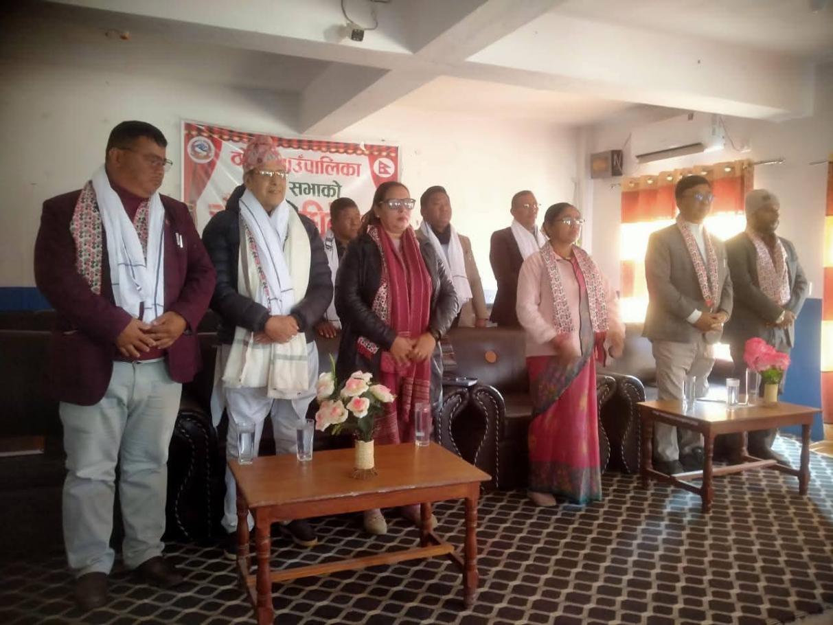 सर्वसम्मत रुपमा पारित गाउँपालिकाको चौधौं अधिवेशनमा सम्पुर्ण गाउँ कार्यपालिकाका सदस्यहरुको उपस्थिति रहेको थियो ।