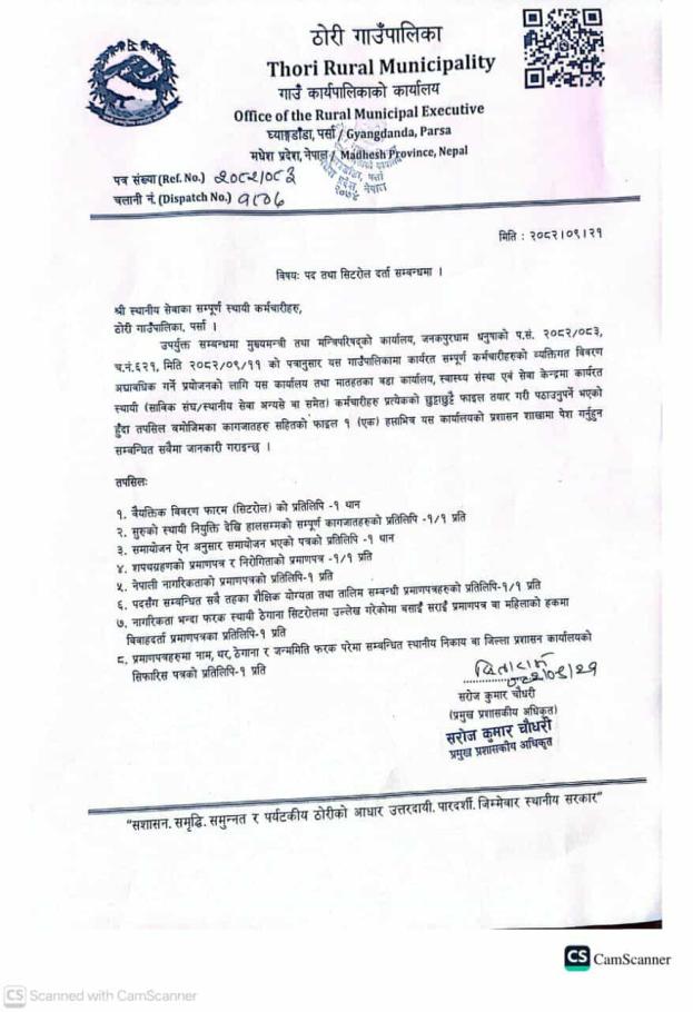 पद तथा सिटरोल दर्ता सम्बन्धमा।
