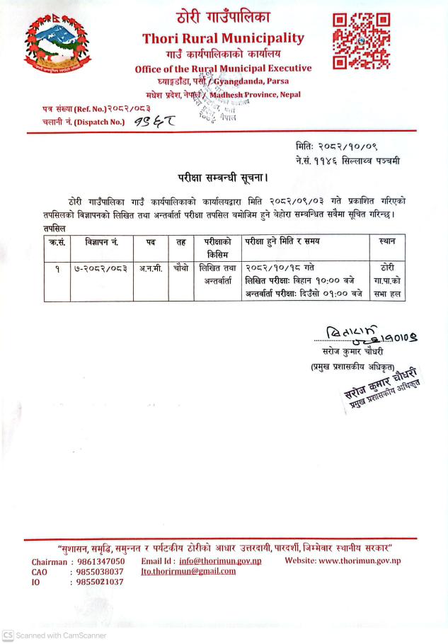 "सु-शासनयुक्त सक्षम एवं सवल स्थानिय सरकार ! पुर्वाधार निर्माण, कृषि, पर्यटन र सशक्तिकरण ठोरीको आधार !!"