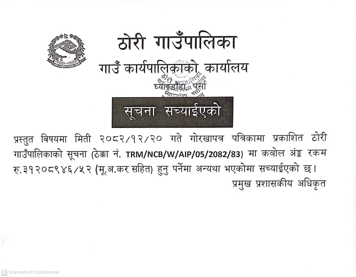 "सु-शासनयुक्त सक्षम एवं सवल स्थानिय सरकार ! पुर्वाधार निर्माण, कृषि, पर्यटन र सशक्तिकरण ठोरीको आधार !!"